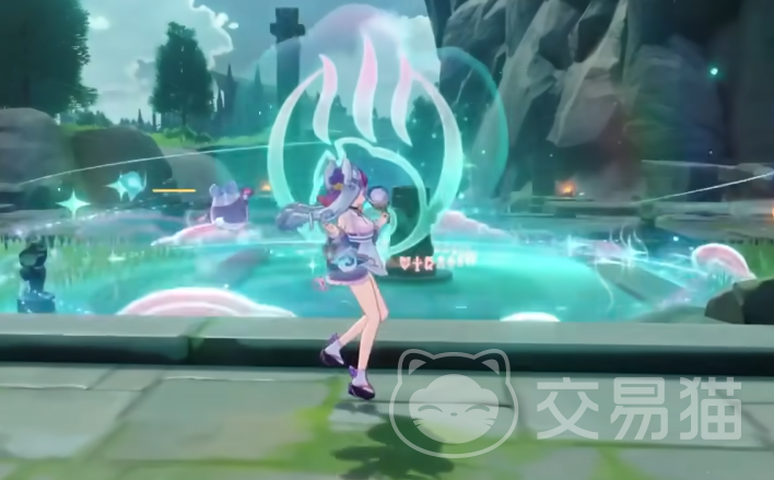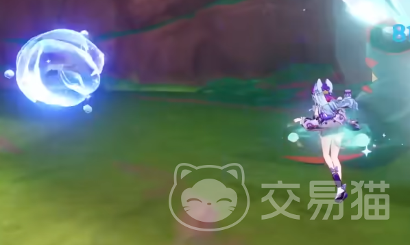 此外这段攻击还可以在跳跃的时候使用,施展后会有一个砸地板的效果,它和正常情况下的第三段攻击没有区别。之后是她的二技能元素战技,发动之后她会编织美梦。