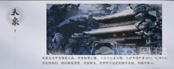 天泉门派的定位十分明确侠客。无论是刀光剑影,还是行走江湖,他们追求的是天理昭彰,心中正义无敌。天泉的战斗风格偏向近战,武器是沉重的陌刀,专注于厚重致命的攻击。天泉的核心技能之一是鹰扬虎视,这招能提供最大气血值25%的护盾,让你在激烈的战斗中存活得更久。激活“浴血”状态后,还能触发感知效果,给敌人致命打击。另一个核心技能虎啸龙吟是一个二段蓄力技能,蓄力时间越长,伤害越高。蓄力后的一击不仅能让敌人深感痛楚,周围敌人也无法幸免。逐日追风这招可以通过陌刀的重击汇聚气流,不仅伤害高,而且聚怪效果出奇的好。简直是刷副本和清怪的神器。