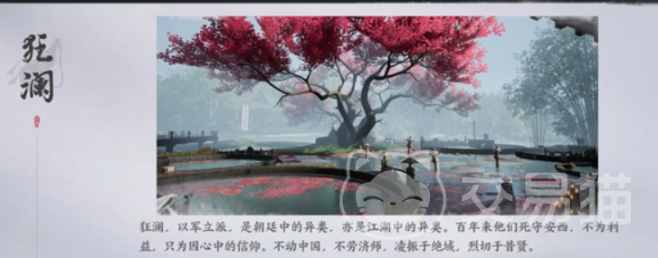 狂澜门派可是江湖中的另类。使用长枪的狂澜在战斗中既能防守,又能打出强力的输出。这个门派最大的特点就是在防守与输出之间游刃有余,操作的灵活性非常高。狂澜的愁无酒技能进入“陈情”状态后,挥动长枪连续进行六段攻击,连击后还能触发增益效果。而江流技能则是最高连击触发特效时,爆发输出极为可怕,能瞬间改变战局。狂澜是一个非常适合喜欢灵活应变,挑战高操作与变化的小伙伴。
