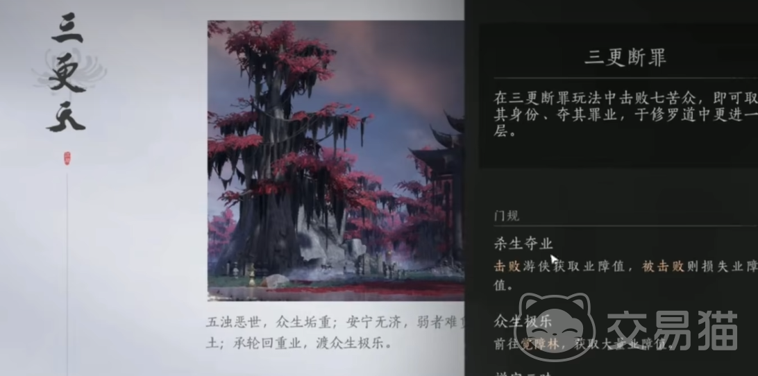 三更天的修者,承载着“大慈悲”的理念,他们的战斗风格非常适合喜欢操作复杂技能的玩家。中远程双刀攻击,加上持续的累积伤害,使得他们在战场上游刃有余,炫酷的技能连招简直让人眼花缭乱。三更天的痴障技能是一个长距离冲刺技能,可以在冲刺过程中造成多次气血伤害,打击敌人时让你感觉如虎添翼。嗔焰则通过积累“业障”,主动消耗气血来增强攻击力。用得好,输出爆发性极强。三更天的高操作门槛可能让一些玩家感到挑战,但一旦掌握了技能的连招组合,炫酷的战斗场面和强大的输出能力都会让你感到极大的满足。