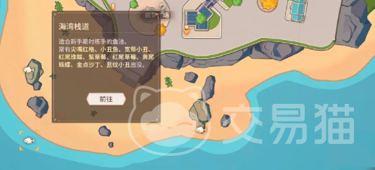 玩家可以直接通过地图搜索的方式,深海口所在的位置就在海滩的边上。玩家可以点击地图上的小鱼标志,一般在这些地方所能钓到的鱼也是不一样的。玩家可以跟着一起来看看,了解这些地方有哪些鱼。