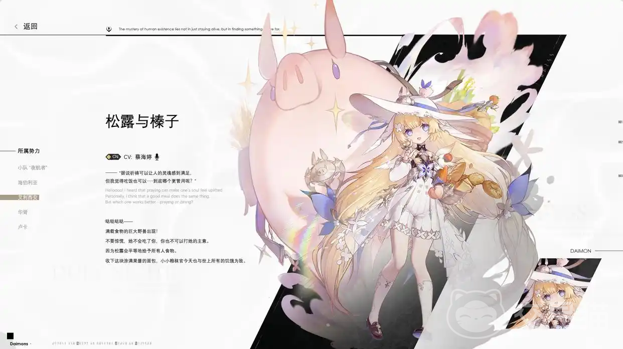 松露作为团队的辅助角色,以治疗能力与团队增益著称。这头巨大的野兽有着温和的个性,不会伤害玩家,反而为团队成员提供食物与恢复效果。松露的技能能够在战斗中为队友提供持续治疗,同时提升团队的生存能力。她的存在让玩家在高难度战斗中能够更加从容,尤其是在面对持久战时,松露的治疗支持是不可或缺的关键。