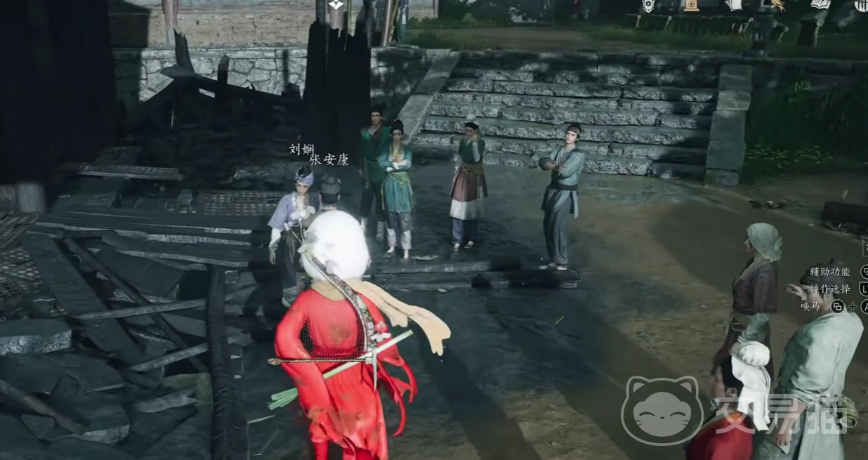 进入到着火的房子时,玩家可以看到一对正在说话的夫妻,此时不建议玩家直接绕到这对夫妻的面前进行窃听,而是前往到夫妻的房梁后窃听他们的谈话,在谈话之中,玩家就能够获得一叶平生任务的线索了。