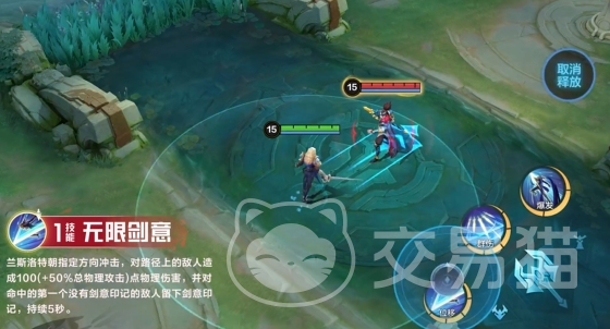 无限剑意的首个技能是兰斯洛特向指定方向冲锋,并留下一个印记,如果攻击到的目标没有被印记标记,该技能的冷却时间将被重置。这个技能不仅能让兰斯洛特快速进入战斗,还能通过重置冷却时间实现连续的移动和攻击,使他在追击或撤退时更加灵活。