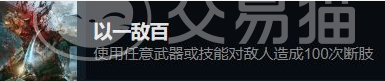 以一敌百:同样是以任意的武器,然后造成100次左右的断肢。这一个技能和百战无前是比较相似的,并不需要刻意的去刷,一般在战斗中留意断肢的操作即可。