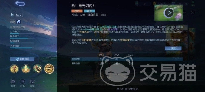 佐儿的终极技能是其最为强大的杀手锏,在激活终极技能后,佐儿可以获得强大的魔法防御力和速度提升,在4秒内对周围敌人造成8次高强度伤害,并获得40%的生命偷取效果。在短时间内变成了战场上的一大威胁,不仅能够持续输出高额伤害,还能通过生命偷取保持自己的生存。
