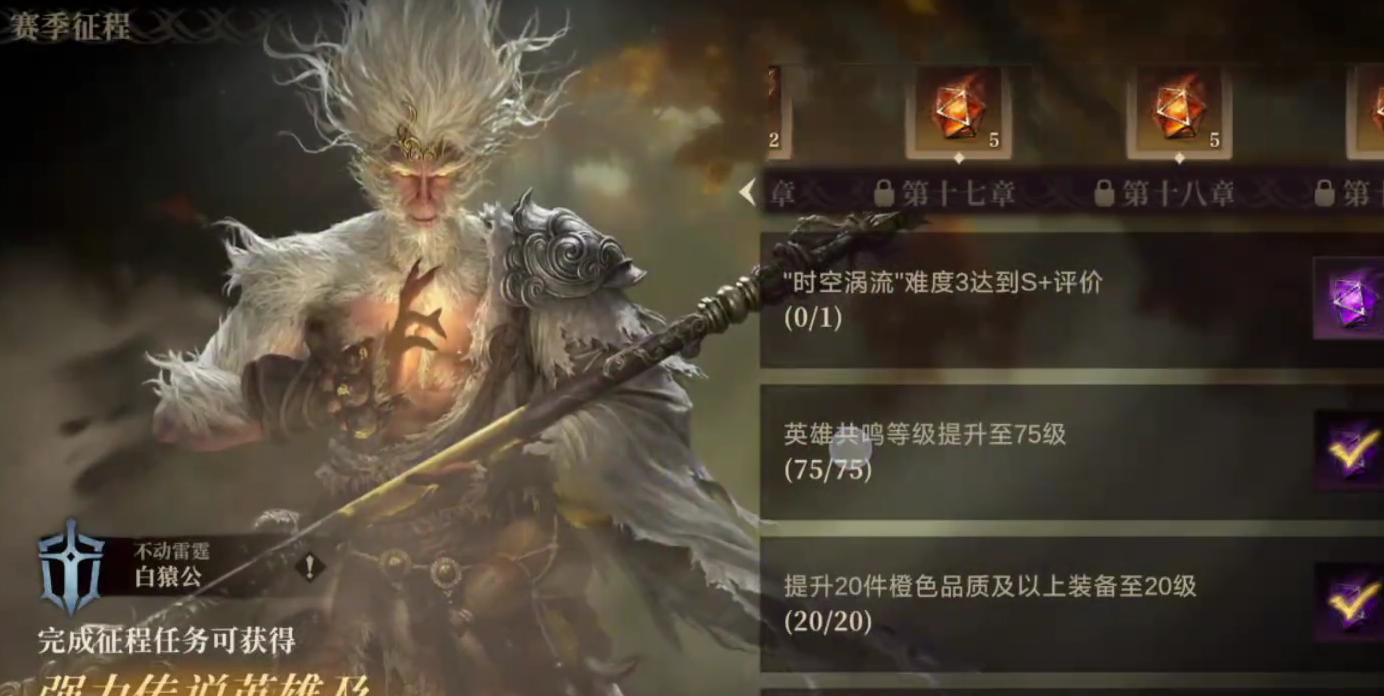 倘若玩家想要获取它,只能够通过完成主线剧情内容的时空漩涡方式,并且达到S的评价之后,才能够获取,不止如此,玩家的基础游戏等级必须达到75级以上,并且提升了二十件橙色或紫色以上的装备,在完成了系列任务后,玩家即可获取白猿公。