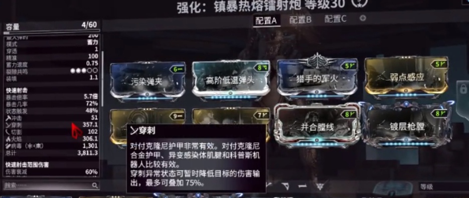 在使用这把武器时,玩家们可以选择病毒火这个配卡,后续还可以装备猎人切,虽然属性面板只有中等的水平,但是他的攻击范围还是很不错的,并且携带了一个磁力的元素。