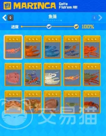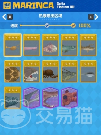 鱼笼区域的收集进度也为100%,这是一个人造的水域,通常设置在浅海地带,方便玩家进行日常的捕捞和收集。鱼笼中隐藏着一些较为罕见的鱼类和海洋生物,玩家需要使用特定的工具才能打开鱼笼,获取里面的卡片。鱼笼区域的探索相对轻松,适合玩家在游戏初期建立资源库。