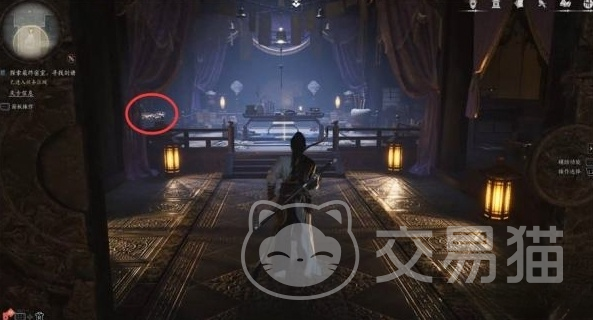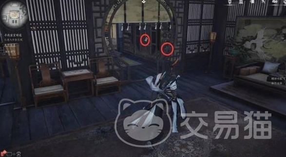 与赵承宗对话后,告诉你需要找到一把飞镖才能继续下一步,需要从房顶绕到后面,找到一个没有守卫的地方进入屋内。屋内有一把小锁,需要偷到钥匙才能打开,找到飞镖后,使用它启动大厅左侧柜子上的机关,打开密室暗道。