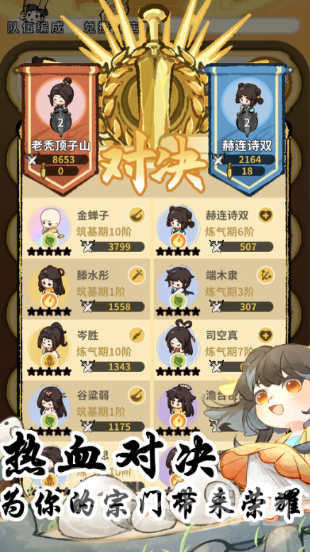 游戏的战斗机制以回合制战略为主,玩家需要将自己先文当中的弟子进行编排,并且还要按照各地字之间的天赋区别,来进行队列职能的划分。