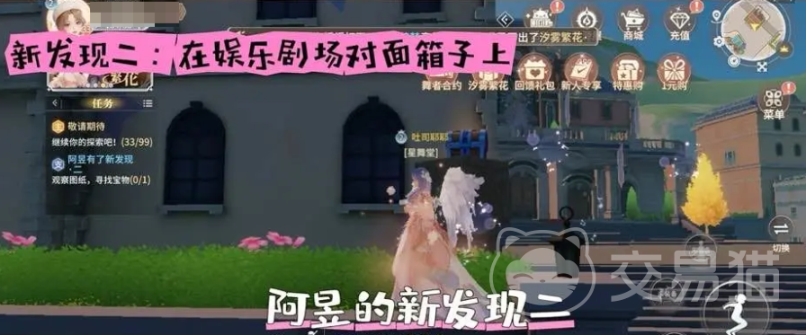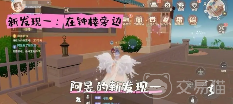 要说阿昱有了新发现,是在游戏当中他发现了三个新的地点,这时候玩家就需要帮他找到这三个地方,并且完成所对应的任务,玩家就可以获得奖励。阿昱的第1个发现就是要来到钟楼的旁边,仔细的观察一下周围的环境,这时候就能够找到阿昱所说的第1个发现。
