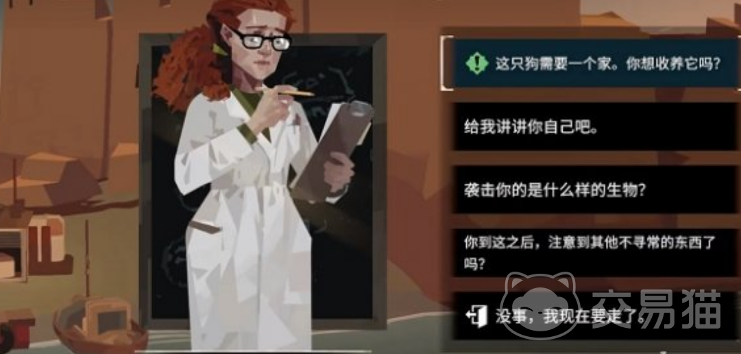 等找到研究员以后,和研究员交互的过程中会触发5个不同的选项,这几个选项分别是: