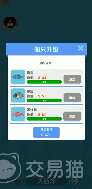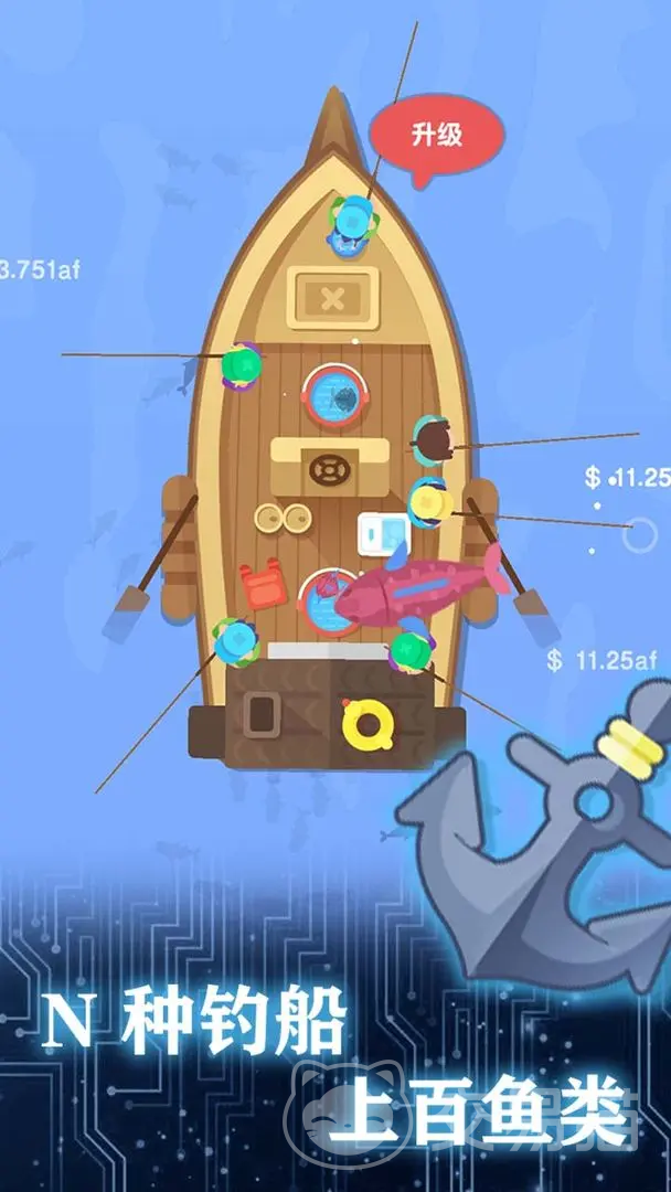 总体的游戏难度并不高,主要就是通过在船体上面垂钓获取收益,期间很值还能通过周围的鱼群来辅助垂钓,也能通过其他的方式升级增加收益,逐步慢慢解锁更多的鱼类,更多的垂钓工具,提高自己的钓鱼水平。