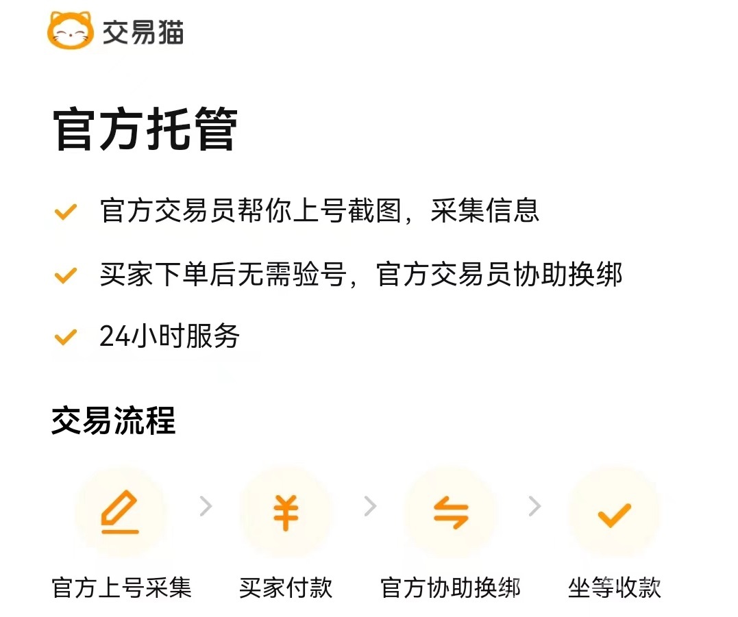 另外这里出售商品类型也非常多,不仅仅只有成品号,还提供了道具交易,综合代练,极速代练,资源号交易,首充号交易等一系列类型,这些都可以直接通过分类点击去选择。如果要想进行出售这些比较特殊的账号和道具,需要先缴纳保证金,然后就可以出售这些账号道具了,稳定获得收益。在出售成品号的时候,目前这款游戏是支持官方托管,官方托管优势非常多。由官方交易员登录游戏后,采集真实商品信息。这样做可以大幅度提高账号内的可信度以及出售速度。因为在交易过程中是不需要进行验号的,而且由官方交易员直接进行协助,将绑定更换。只要买家挑选好之后下单付款,很快就能发送到手中,这样自然获取收益的速度也会大大提升。