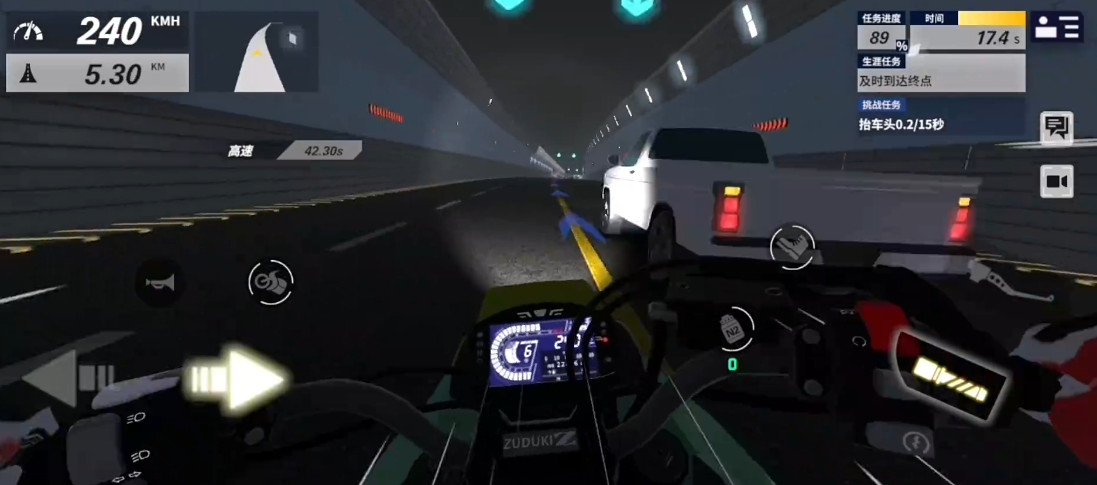 成功加时之后就是常规的一些操作了,如果想完成挑战任务翘头15秒,那么就可以在这个阶段的前部分不踩减速带,在桥头的同时注意控制好别撞车,虽然有一定的难度,但也是可以做到的。