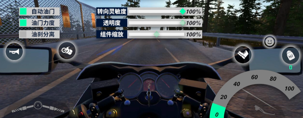 有三种摩托驾驶方式,分别是按键、陀螺仪、摇杆。布局是可以自己去调整的,将那些使用较多的放置在方向附近,这样操作会更快。例如翘头、喇叭这两个用处不是很大。此外,为了提升操作性,可以将自动油门开启,会有一个力度表,这个可以根据自己的喜好去调整。氮气和脚踹则可以放在油门上面。