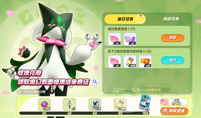 咱们在新的赛季之中将会出现全新的宝可梦,而这一次的宝可梦便是魔幻假面喵。咱们在游戏版本更新之后可以完成每日的挑战和任务来收集落花,这些落花便可以兑换这位全新的宝可梦。