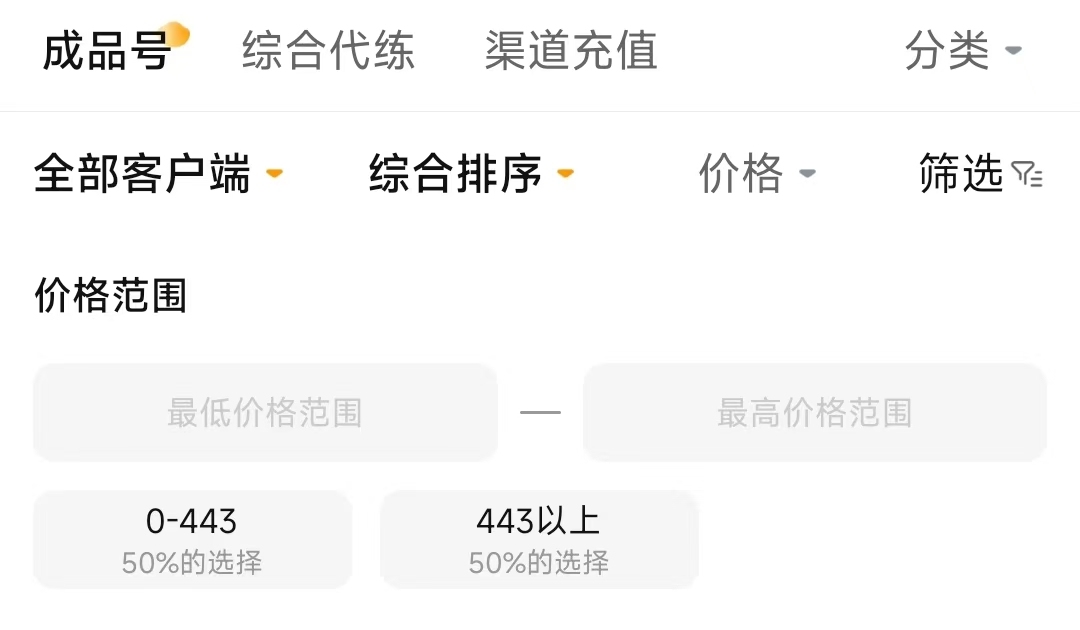 通过在交易猫上搜索会发现这个游戏的账号普遍在400左右,如果只是单纯的想体验下游戏的话,也有价格比较低的账号,不过这些账号等级普遍较低,也基本上是初始号,想要高级点的账号,价格就会高一些。当然买家愿意的话,可以尝试下议价功能,说不定卖家就会同意了呢。
