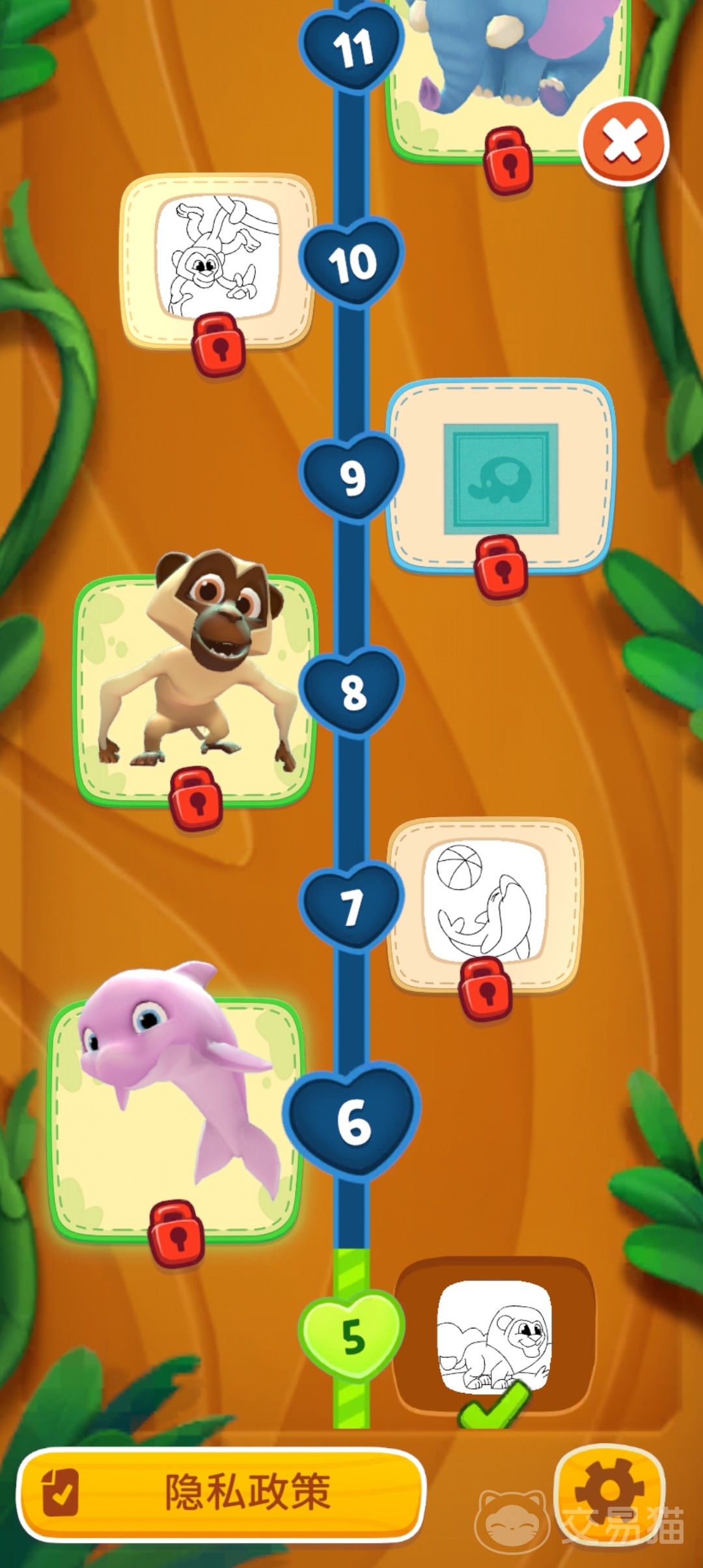 海岛版本与初代有着很多类似的地方,比如说穿衣喂食等养成机制,完成后直接可以获得的是爱心值,而爱心值满之后提升的就是等级,等级提升所带来的就是其他动物的解锁以及海岛区域的探索扩张,每一个动物都对应着一个专属的探索区域以及可以独立玩的小游戏,都非常有意思。