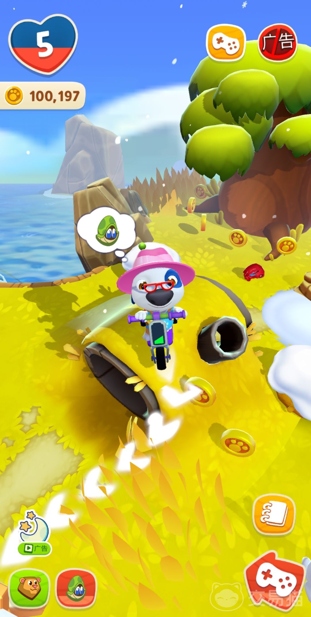 全新的海岛地图开局不需要提升等级就能直接探索,区域内分布着各种形态各异的新动物伙伴,前提是必须达到指定等级才可以解锁与其交互的相关玩法,这些小游戏获得的金币奖励是非常丰富的,而且众多的交互设计使得所有的花草树木都可以爆出金币与爱心,在海岛内骑着小车随意的穿过草丛以及建筑物等等都能够获得大量奖励。