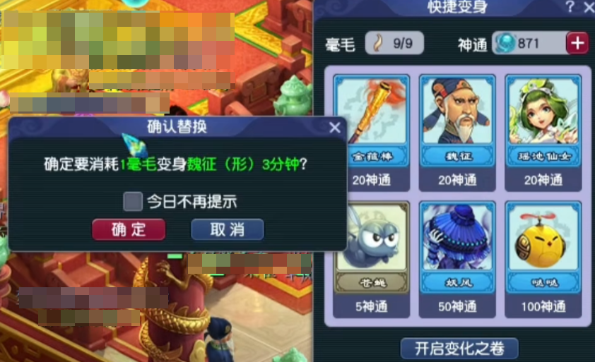 对话“神变”成“土地庙”就可以去采矿了,直接神变就可以获得7点元宵节积分。想要多获得积分需要解锁72变的变身卡,然后选择形变,形变是免费的。
