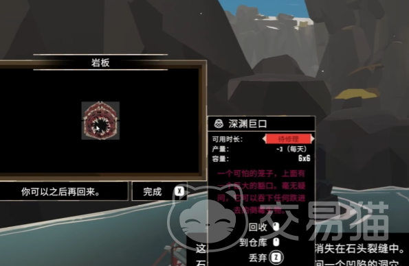 奖励是一个更强的蟹笼“深渊巨口”,这是一个6×6的蟹笼,虽然单次捕捉量有略微降低,但是耐久高,可以放那里很久,大约是11天,这样能提升后期捕捞的效率,是升级渔具的重要装备之一。