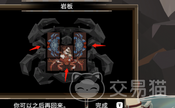 材料道具准备好了后,在祭坛界面,将1只装饰蟹放置在中间,将2只石蟹/蓝蟹分别放在左右两侧,要左右对称,放的时候仔细检查图示提示,确保排列正确。只要正确摆放,系统会自动检测并完成解谜获得奖励。