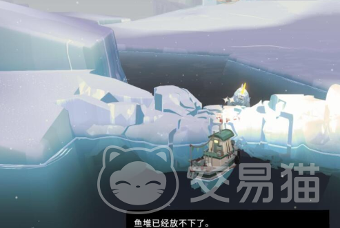 遇到冰川阻碍的情况下,就在架上放满捕捉到的鱼类,然后等独角鲸撞开道路即可,记得用冰鱼的话需要八条,继续深入后能看到金光,靠近后得到第一个破冰犁零件,然后在旁边中心营地处靠岸就能解锁地图。