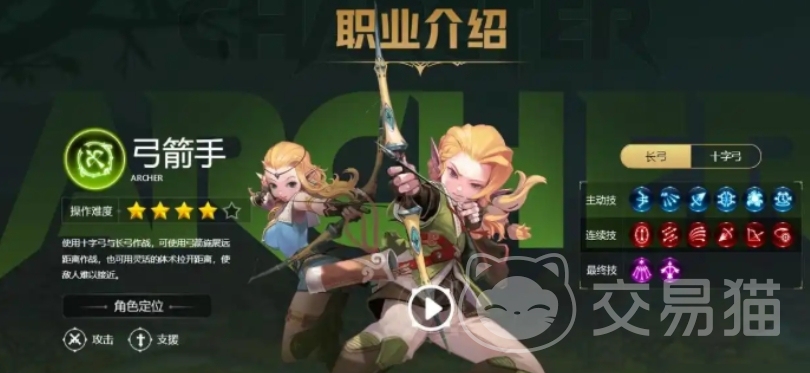弓箭手则是以敏捷的身手和超远的射程被大家喜爱的,他们擅长远程作战,总能在安全的距离外对敌人发起攻击,降低敌人的攻击力,让敌人防不胜防,弓箭手的武器包括长弓和十字弓。长弓射程和精准的命中率优势成为弓箭手的最爱,而十字弓则以其强大的穿透力和快速的射击速度,在战场上发挥着不可替代的作用,弓箭手职业同样拥有四种独特的转职方向有狙翎、魔羽、影舞者和风行者。