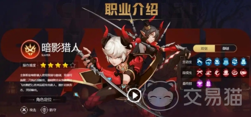 最后暗影猎人则是有双剑和御剑的技巧,同时兼顾近战输出又能远程攻击,让敌人难以捉摸,暗影猎人的四种转职职业是影刃、劫炎、幽冥和暗月,影刃有着迅猛的攻势和致命的伤害,劫炎则擅长运用火焰之力,对敌人造成持续的灼烧伤害,幽冥有着诡异的身法和神秘的技能,而暗月则以其优雅的战斗风格和强大的控制能力,在战场上展现出非凡的实力。