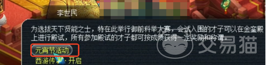 解谜的玩家们,赶紧前往金銮殿找到李世民,和他对话,选择元宵节活动的选项。如果你运气好,可能会获得一些不错的奖励,比如金刚定魂兽爵5宝和黑宝石1颗。而李世民会要求你完成一个心愿——用七十二变变成魏征的样子,记住是形变!完成后,你将获得7点元宵积分,并解锁“心愿达人”成就。