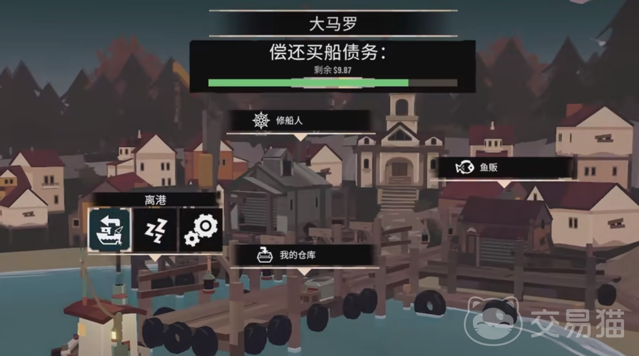 之后咱们在小镇贷款买了一艘船之后便正式开启游戏了。咱们主要的赚钱渠道就是进行捕鱼来进行出售,前期咱们的设备并不算好,所以不要跑去非常偏远的地方去进行钓鱼,咱们在小镇附近进行垂钓即可。