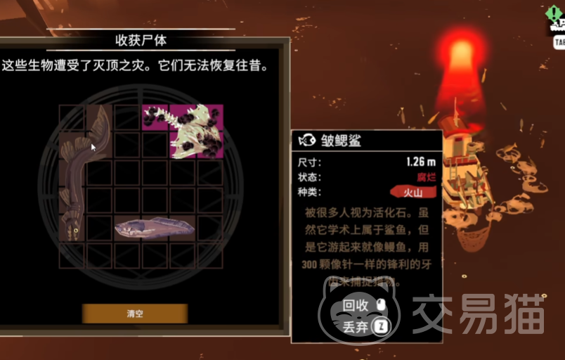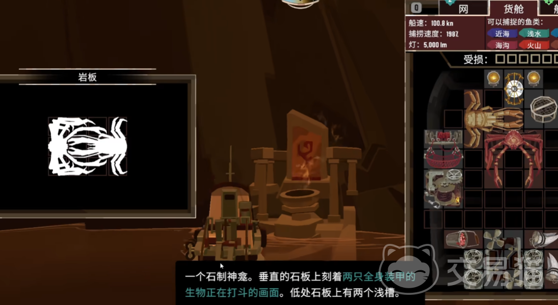 最后一个祭坛需要2条畸变鱼,用枯萎技能就有很大几率能捕到畸变鱼,另一条畸变鱼则要钓或者用渔网捕。火山这里没有岩板任务,完成最后一个祭坛的烈火获取就会自动给到一个高速钓具。