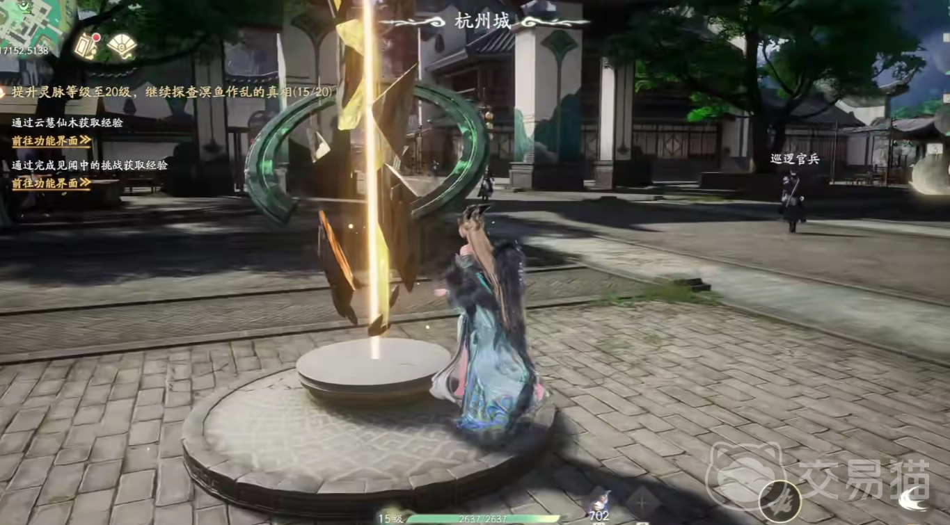 游戏前期玩家还需要完成的内容,实际上是点亮游戏的所有地图传送点,例如当玩家进入到杭州城时,就要抵达杭州城的中心区域,通过拔起大剑的方式,来点亮地图。
