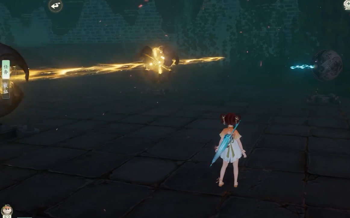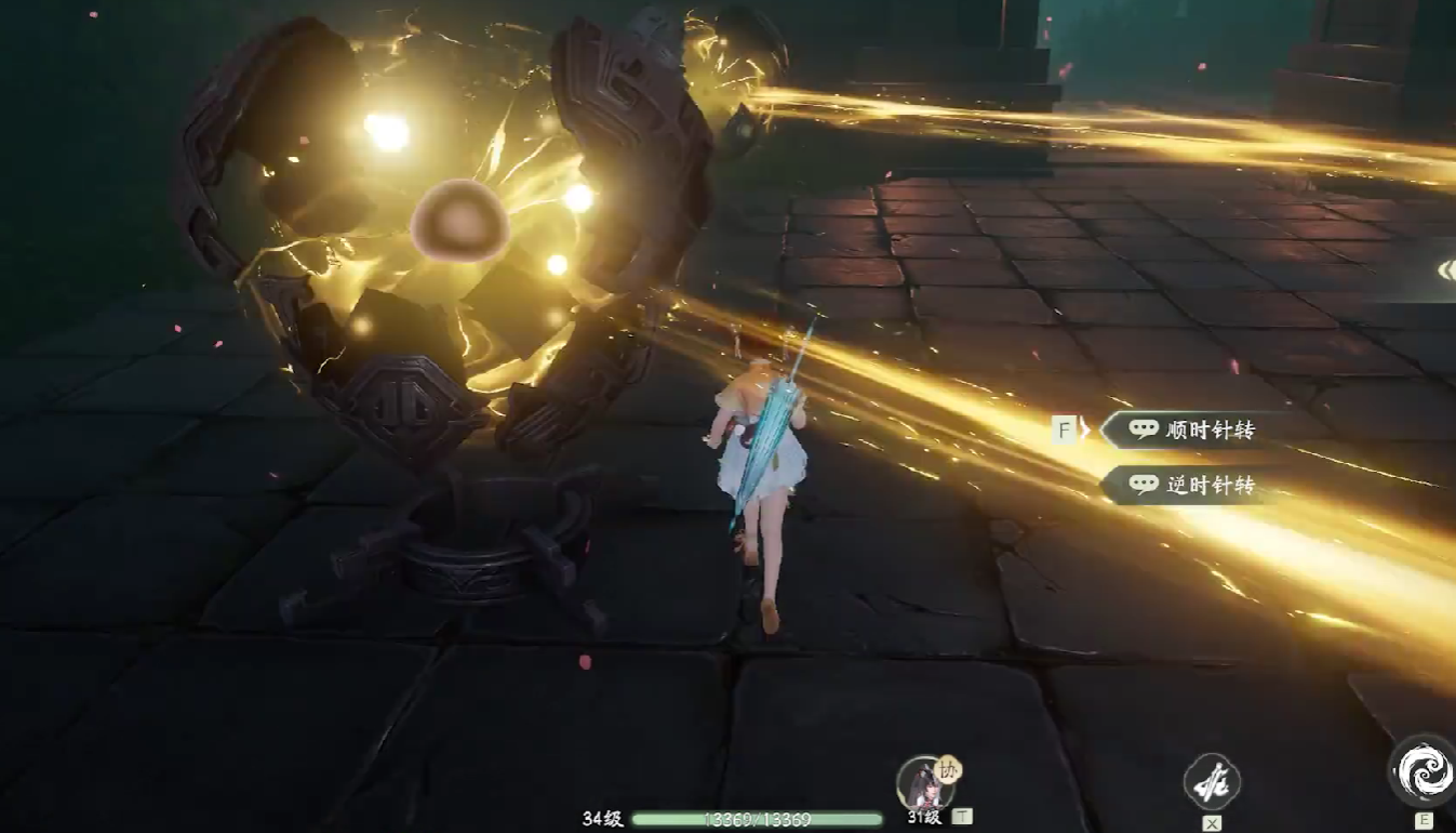 龙桥探秘玩法内的解谜任务总共有三个,第一个是刚进入到龙桥区域内时出现的太极盘,玩家需要让金色的光线流转,并且将太极盘的所有灵力都互通,此时玩家只需要将正东方和正南方的石块,进行一次顺时针扭转,即可破解该解谜难题了。