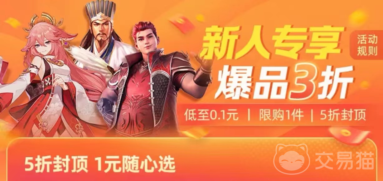 除了提供安全可靠的账号交易服务,交易猫还会定期推出各种优惠活动。例如,新用户可享受爆品折扣,部分商品可低至三折,甚至还有限时优惠券可以抵扣交易费用。这些优惠活动让玩家以更实惠的价格,购买到心仪的游戏账号。现在又正值新春佳节,屏幕前的各位观众如果想要最大化利用好压岁钱,以购买到更多更优质的游戏账号,就可以把握时机,成为平台的新用户,享受多多折扣福利。