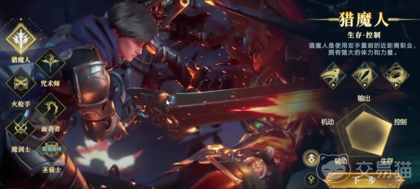 先介绍一下猎魔人这个职业,他在整个队伍中作为肉盾,擅长的是生存跟控制,由于他双手拿着重剑,属于近距离的职业,而他还拥有特别强大的力量。在技能特等方面,他的初始技能是巨剑狂斩,可以在一定范围内给对手造成攻击,降低对手的移动速度。另外他还有战剑冲锋,战神突袭,旋风之怒等等技能,施展以后会给敌人造成高额的伤害。