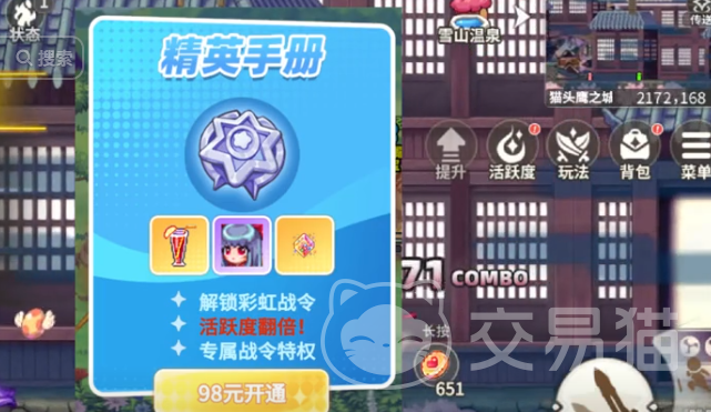 另一个值得氪的是98元的战令,里面有翻倍的活跃度以及双倍经验道具,可以获得更多的经验,而且在升级的时候还会时不时弹出高性价比的移速礼包,考虑买一手。
