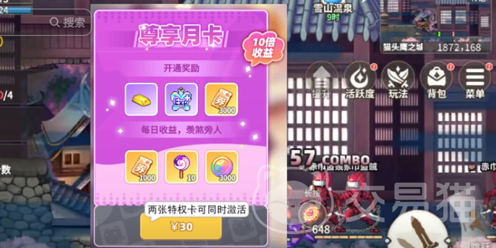 月卡里面有经验加成药剂,同时买了小月卡也会解锁首充礼包,得到里面的“超级成长戒指”,进一步加速等级提升。这种游戏大家基本上是有一个共识的,那就是满级才是开始,因此要尽快先升到满级。