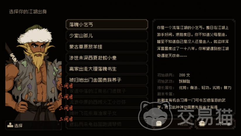 游戏开局玩家需要选择童子剑,童子剑开局的话对悟性和道德要求很高,这里必须要把悟性和道德给卡住,游戏刚开始最完美的开局就是悟性和道德都不要太高,从低悟性、道德玩到高悟性、道德可以以把所有的装备武器、极品铠甲以及各种神功全部都拿到。