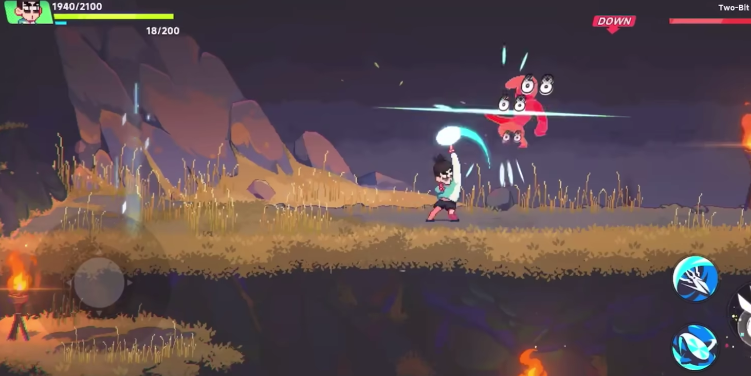 虽然游戏采用的是像素画风,但整体的战斗玩法还是较为复杂的,在战斗期间,玩家被允许使用三个主动技能,同时,普通攻击技能进行连段后,玩家可以造成不同的攻击效果,例如伍六七作为剪刀手时,就可以释放剪刀冲击以及剪刀劈刺,由于这两个技能的前摇时间以及造成的技能效果范围是完全不一致的,所以玩家需要根据敌人的招式趋势,进行正确的技能选择。
