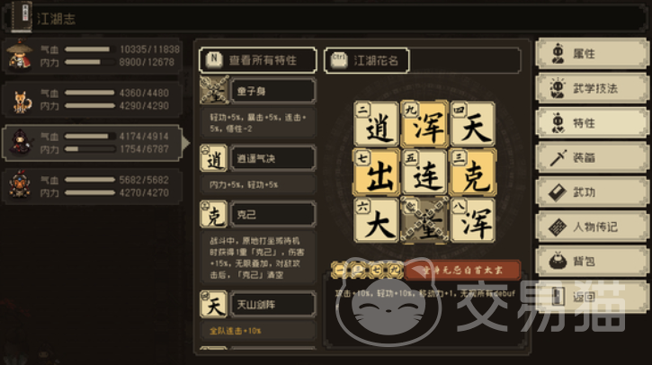 无忌白首太玄是筒子特诸多特性中最容获得的一个,这个特性主要可以提高10%的攻击、10%的轻功、移动能力也会增加1点,最总要的是这个特性能够把所有的BUFF给全都无视掉,这一点是其他特效所有没有的。