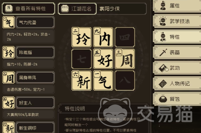 大江湖之苍龙与白鸟这款怀旧风的武侠rpg游戏让很多玩家们都十分心动,那么今天小编想和大家聊的就是大江湖之苍龙与白鸟特性组合的具体选择,想必很多初入坑的玩家对这方面的信息内容掌握比较一般般,也希望通过今天小编和大家分享的这几个实用的特性组合方法,让更多的小伙伴们可以打开游戏思路有着更棒的表现。