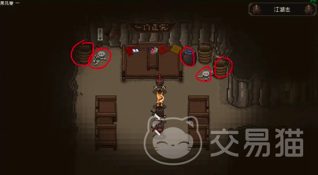 之后顺着大地图一直向上走,抵达金兵军营,出了大地图最右侧的两个花花草草的地方可以获得草药之后从左边的大地图出来,来到庙宇下方的洞穴入口,就能够成功进入到黑风寨,在与山贼你结束战斗后搜刮一下房间,小编在下图圈的这些红圈中都可以拿到各类材料。