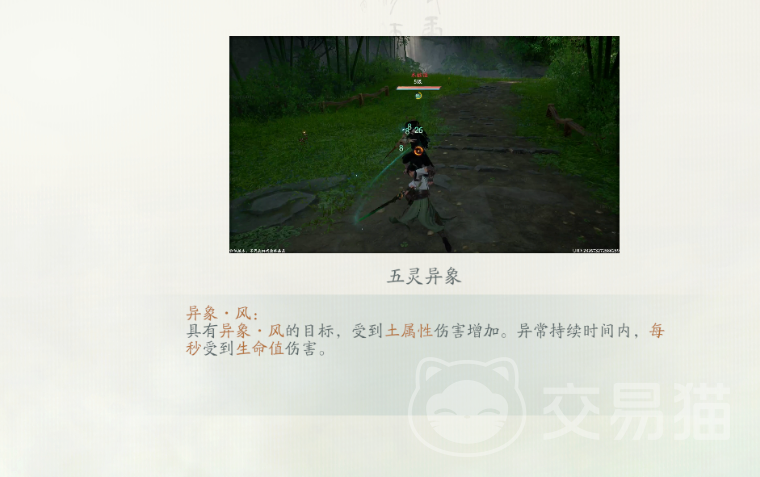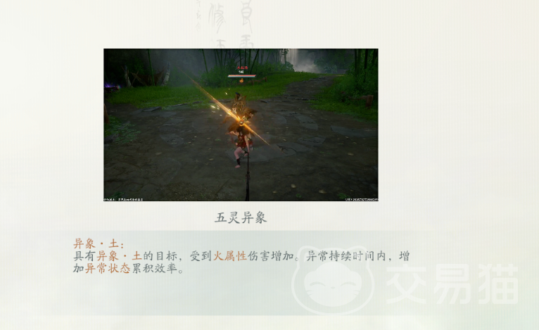 首先不同元素所造成的五灵异象是不同的,被挂上水异象的目标,后续受到的雷属性伤害将会增加,我们攻击该敌人还会产生灵力球,帮助自身额外回复灵力值,火异象会让受到水属性的伤害增加,并且中招者每秒自动遭受到一定的生命值伤害。