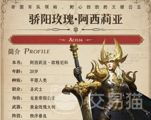 是一个城堡的公主,是一个天生的战士,有一头金色的长发,浑身都会充满力量感和正义感。白金光辉属于一个战斗技能,可以给队友们带来可观的治疗效果。
