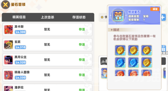 玩家可以组队挑战鉴石首领,击败后随机获得鉴石,并且造成最高伤害的玩家还可获得额外掉落奖励。鉴石的属性主要分为三个部分。首先是鉴石特效,不同类型的鉴石会附带不同的特效,而同类型鉴石在同一品质下,特效是完全相同的。