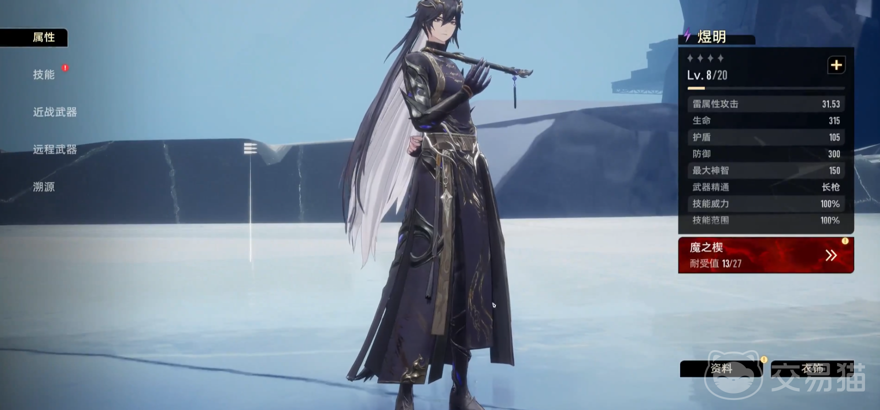 先来看他的增益技能,让身处他周围的对手受到雷属性伤害,并令自身跳跃到空中,滞空期间让下次下落攻击的攻击范围增大;如果“玄蛟”存在,下次下落攻击时,玄蛟会同时进行一次特殊攻击,敌方单位受到雷属性损伤。