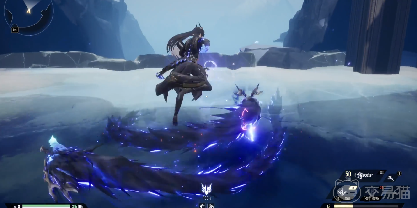其次就是召唤技能了,该技能释放后,让自身附近的敌方均受到雷属性的伤害,并将“玄蛟”召唤出来,“玄蛟”存在期间,他自己受到伤害时不会产生僵直,并将受到的对应的生命值的损伤直接转化到“蛟龙”的身上,这个招式就能进一步增强他的生存效果了,能避免自身受到很多损伤。